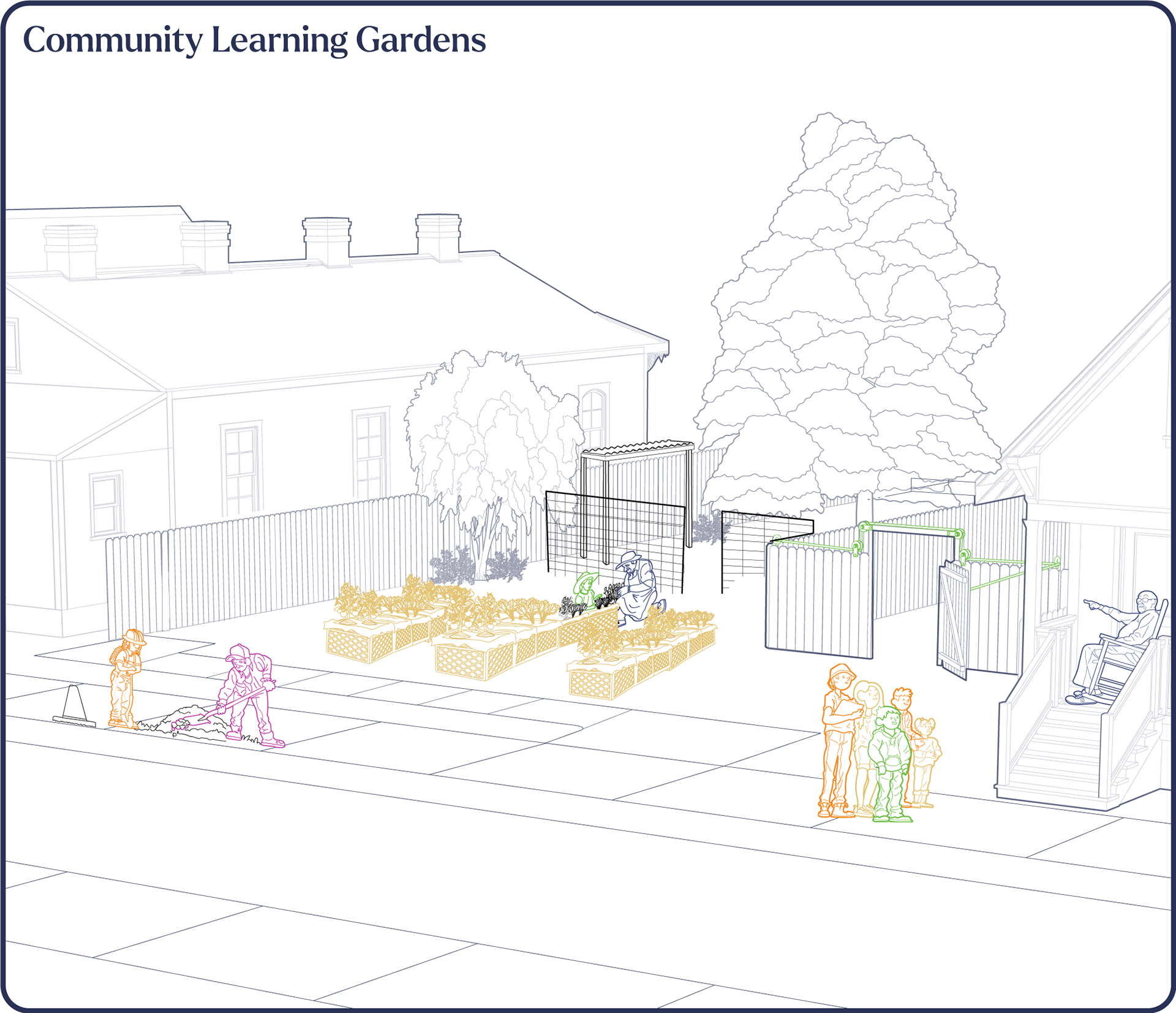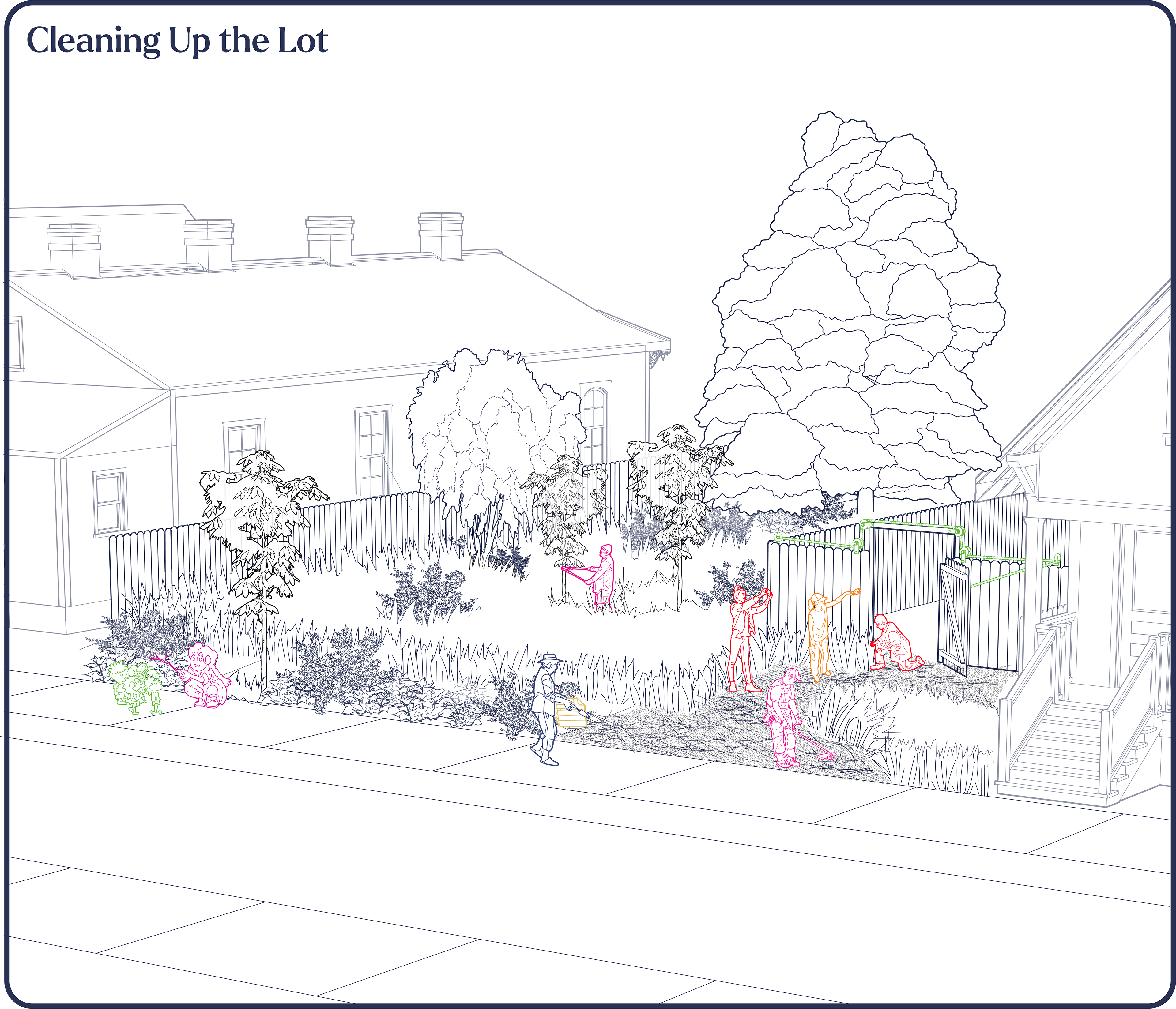 Through the collective efforts of students and community members of St. Claude, the scars of the past become a place where the community to come to learn and play. The structure of the school curriculum gives the community a tenable resource to shape and use the vacant lots as they need. As students rotate through the lots, they get to know their neighbors and the landscape they share.